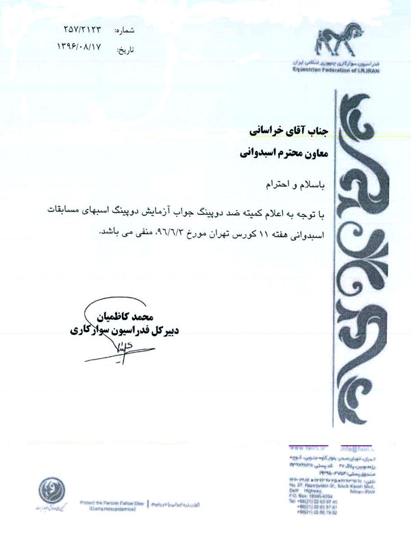 Equestrian Federation of I.R.IRAN vice of Horse-Race