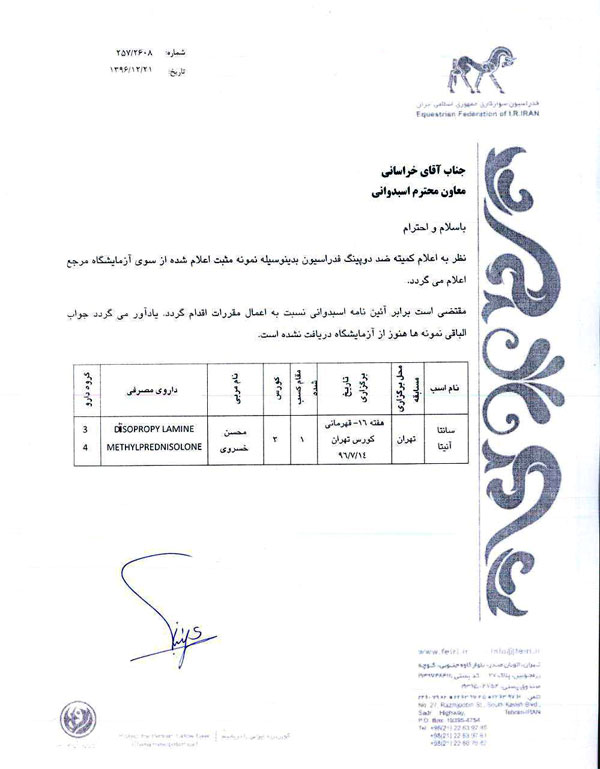 اعلام نتایج دوپینگ هفته 16 تابستان تهران