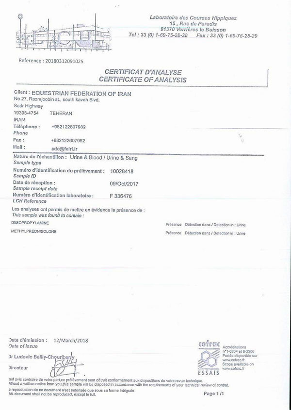 نتایج دوپینگ